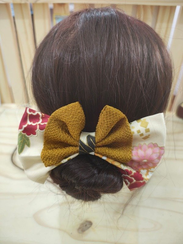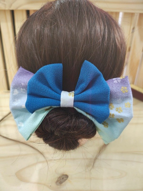 Delicadeza, elegancia y tradición se unen en este hermoso moño inspirado en la estética del kimono japonés. El Moño Chiyo está confeccionado con telas de textura suave y estampados florales que evocan los diseños clásicos del chirimen y del obi.
